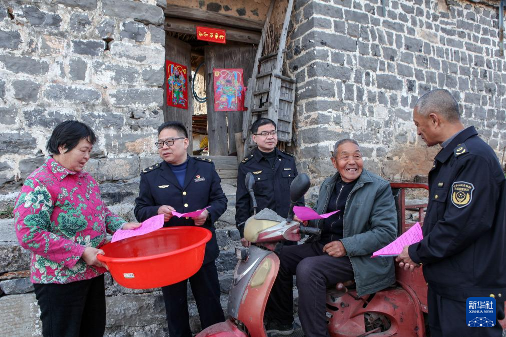 3月14日,在河南省焦作市博爱县寨豁乡茶棚村,市场监督管理局执法人员向村民宣传消费者维权知识。