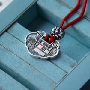 3月13日,孙朋在顾客订做的长命锁上用激光雕刻信息。