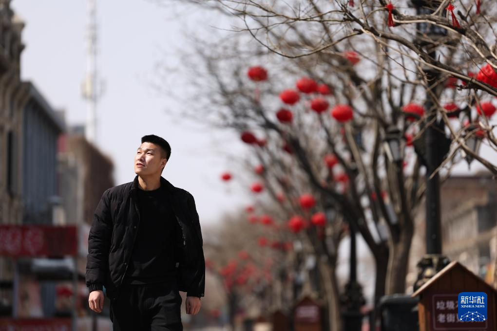 3月13日,孙朋走在辽宁省营口市辽河老街上。