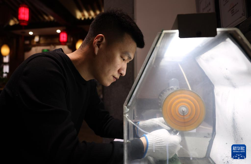 3月11日,孙朋对银饰品进行抛光处理。