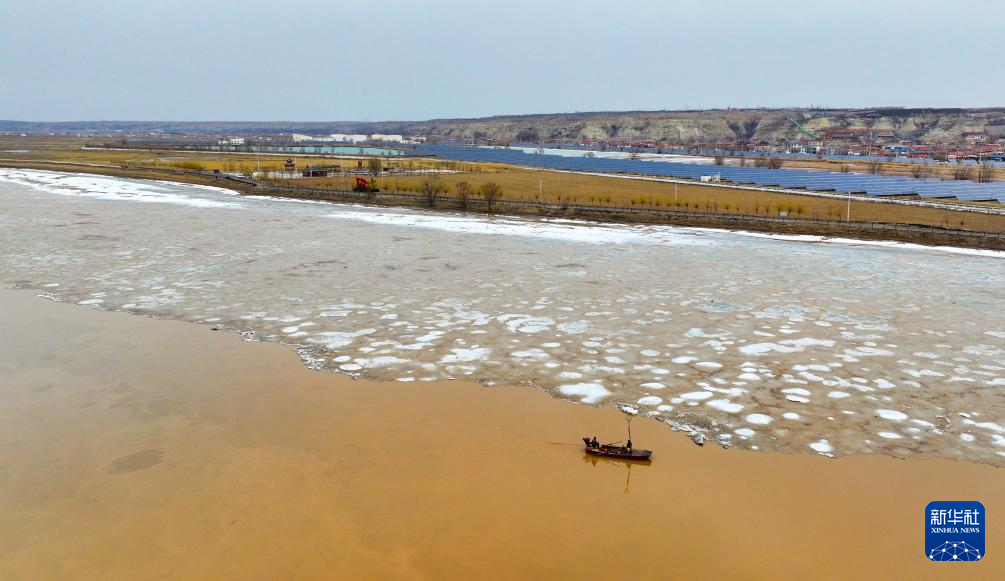 初春时节,在位于内蒙古呼和浩特市的黄河托克托县段,冰封许久的河水逐渐消融。