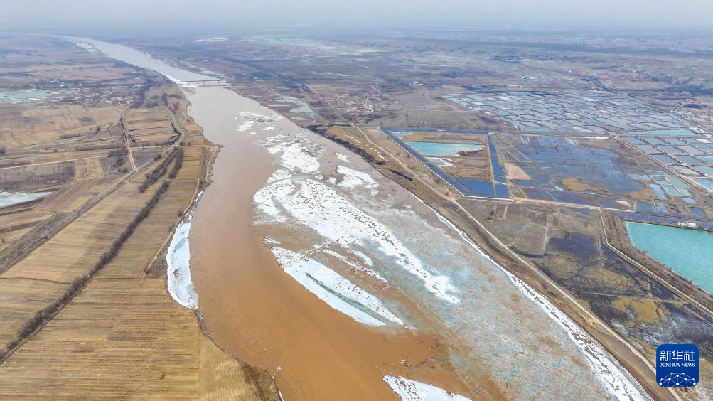 这是3月14日拍摄的黄河内蒙古托克托县段(无人机照片)。