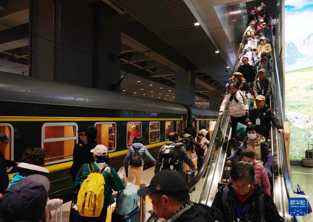 3月15日,在北京丰台站,游客陆续登上2025年京津冀首趟银发旅游列车。