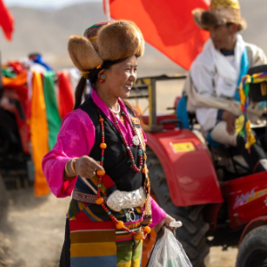 3月16日,在拉萨市林周县春堆乡,农机驾驶员身着盛装参加春耕典礼。