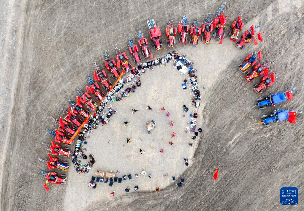 西藏拉孜县曲下镇土林村春耕典礼现场(3月16日摄,无人机照片)。