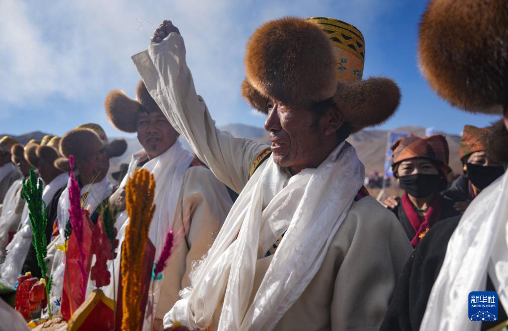 3月16日,拉孜县曲下镇土林村村民身着节日盛装参加春耕典礼。