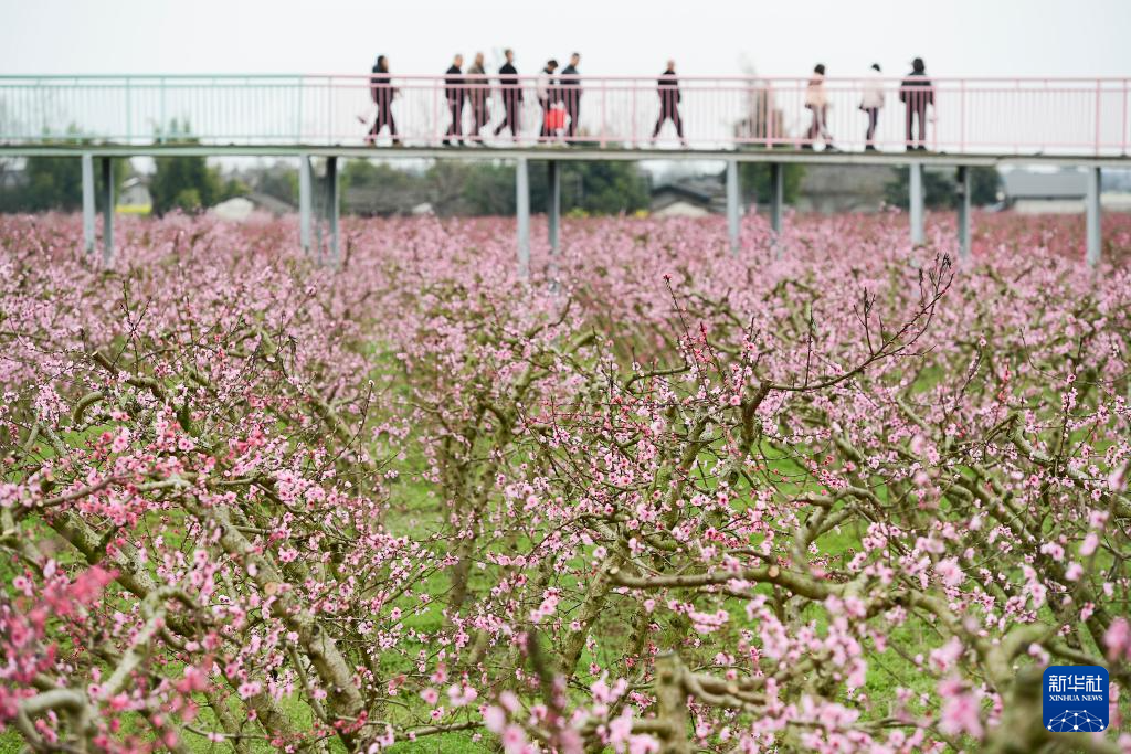3月16日,游人在四川省绵竹市富新镇文永村文永里观赏桃花。