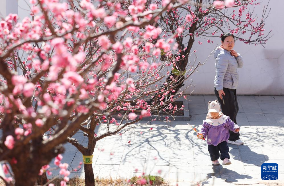 3月17日,游客在石家庄市植物园梅园赏花游玩。