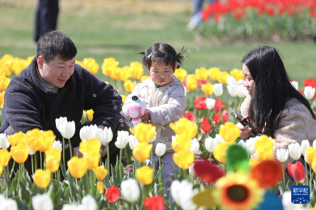 3月17日,人们在浙江省嘉兴市经济开发区姚家荡公园观赏郁金香。