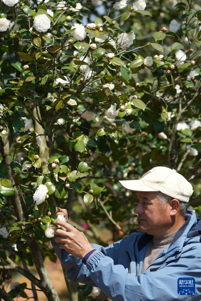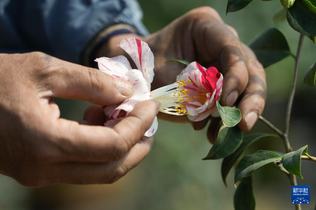 3月18日,在金华市婺城区竹马乡的种植基地,汪政团进行茶花杂交试验。
