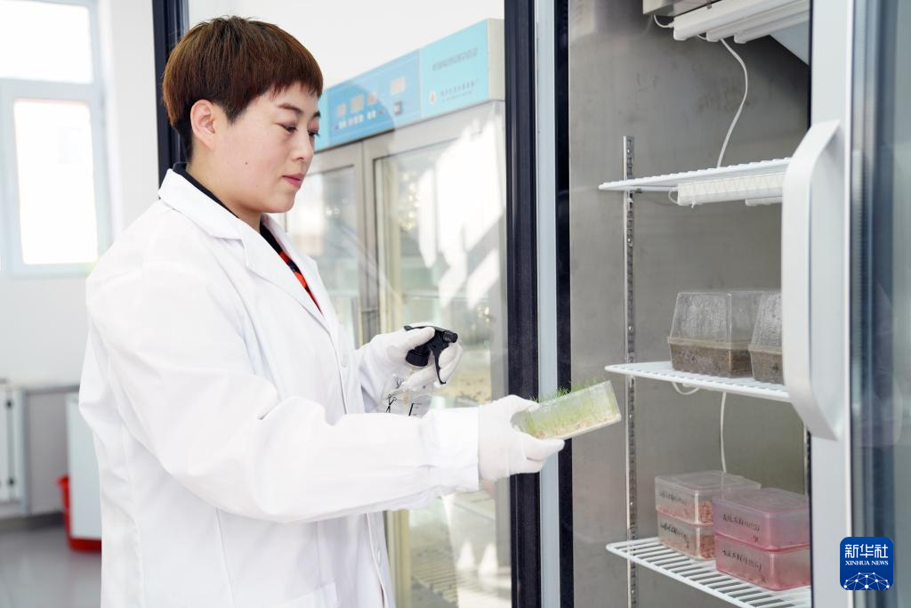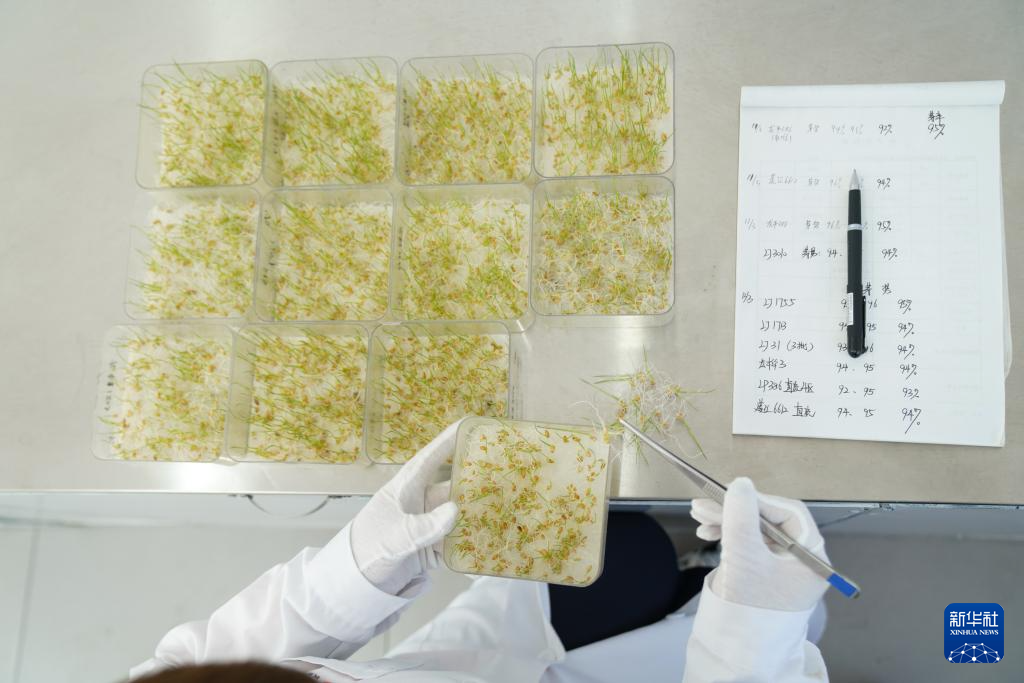 在位于双鸭山市的黑龙江北大荒农业股份有限公司友谊分公司,农业技术员在进行水稻苗发芽率试验(3月19日摄)。