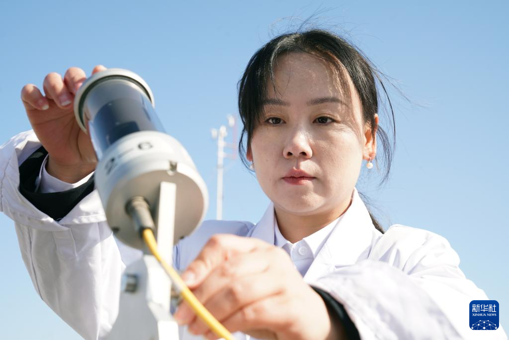 在位于双鸭山市的黑龙江北大荒农业股份有限公司友谊分公司气象站,气象员对自动日照计进行定期维护(3月19日摄)。