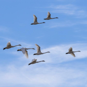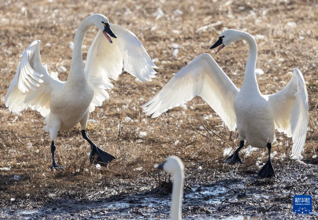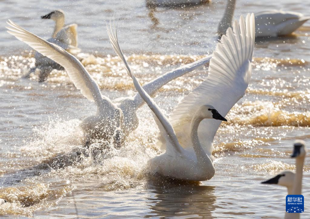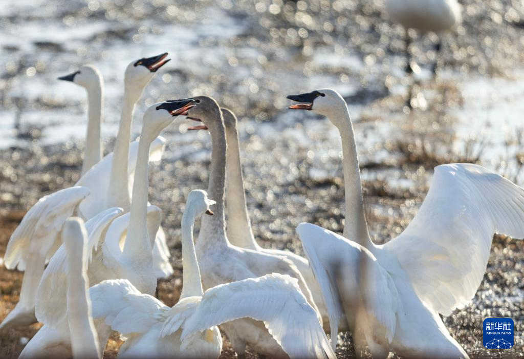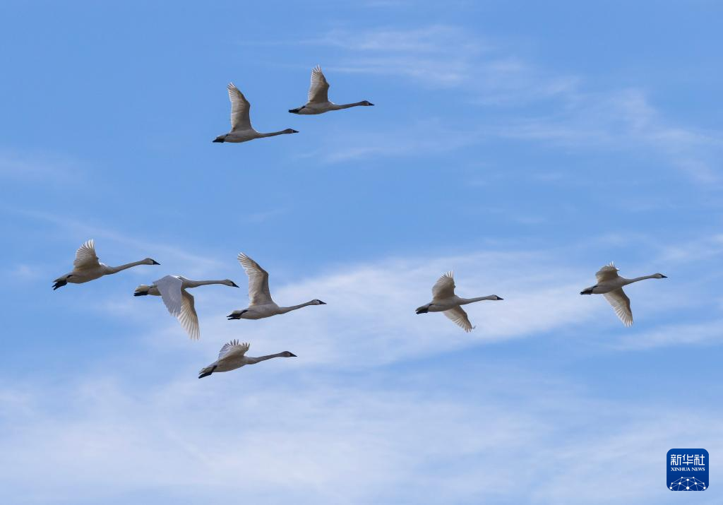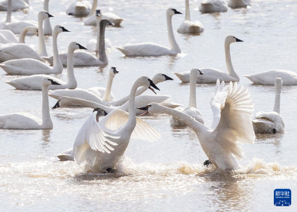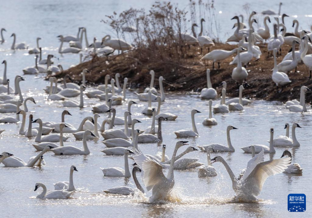 每年2月至4月,众多苔原天鹅在加拿大安大略省埃尔默野生动物管理区短暂“歇脚”,再继续北行。苔原天鹅繁殖地接近北极圈苔原地带,由于体重较轻,迁徙距离长达五六千公里。