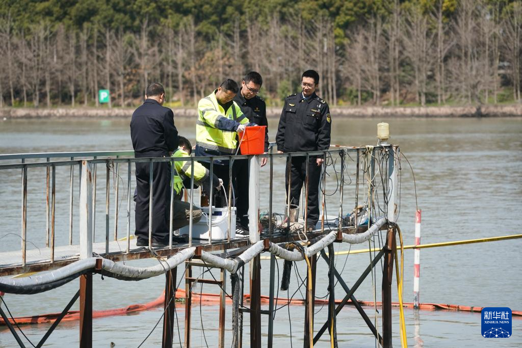 3月18日,来自江苏吴江、上海青浦、浙江嘉善的生态环境部门工作人员对太浦河汾湖大桥断面进行联合水质监测。