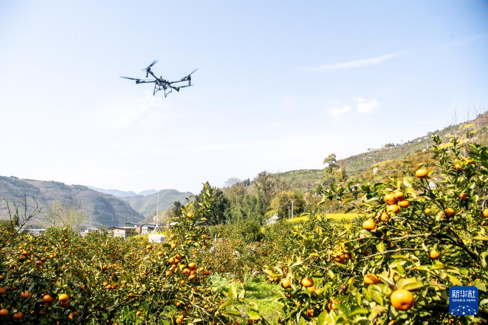 3月20日,在巫山县福田镇,无人机转运刚采摘的柑橘。