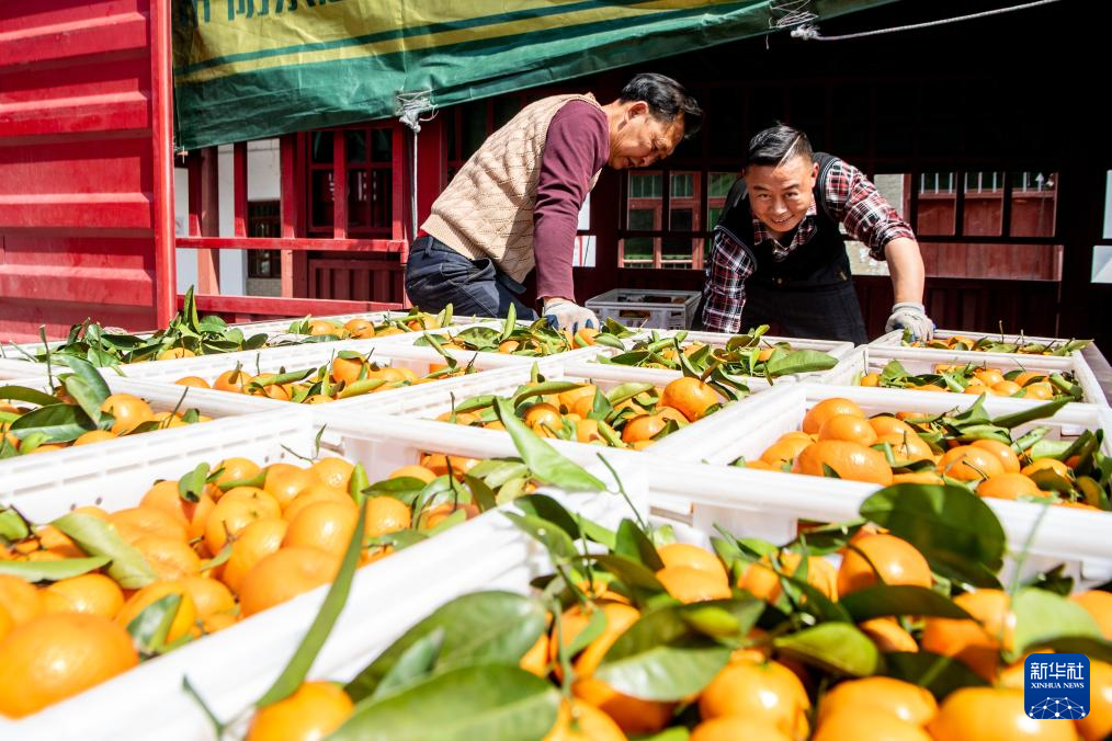 3月20日,巫山县福田镇种植户在将刚刚采摘的柑橘进行转运。