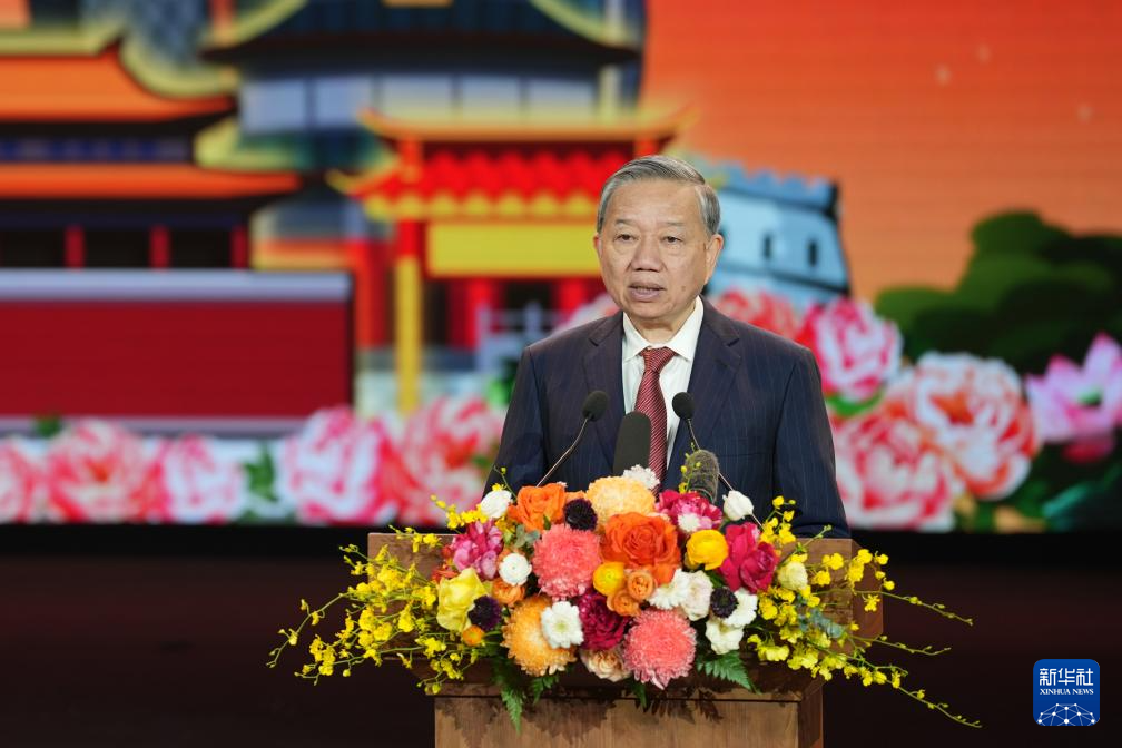 3月20日,在越南首都河内的越中友谊宫,越共中央总书记苏林在见面会上致辞。