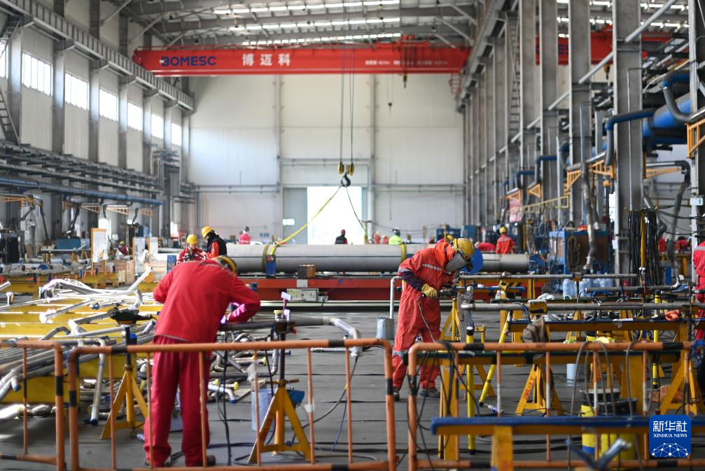 3月21日,工人在天津博迈科海洋工程股份有限公司不锈钢车间内作业。