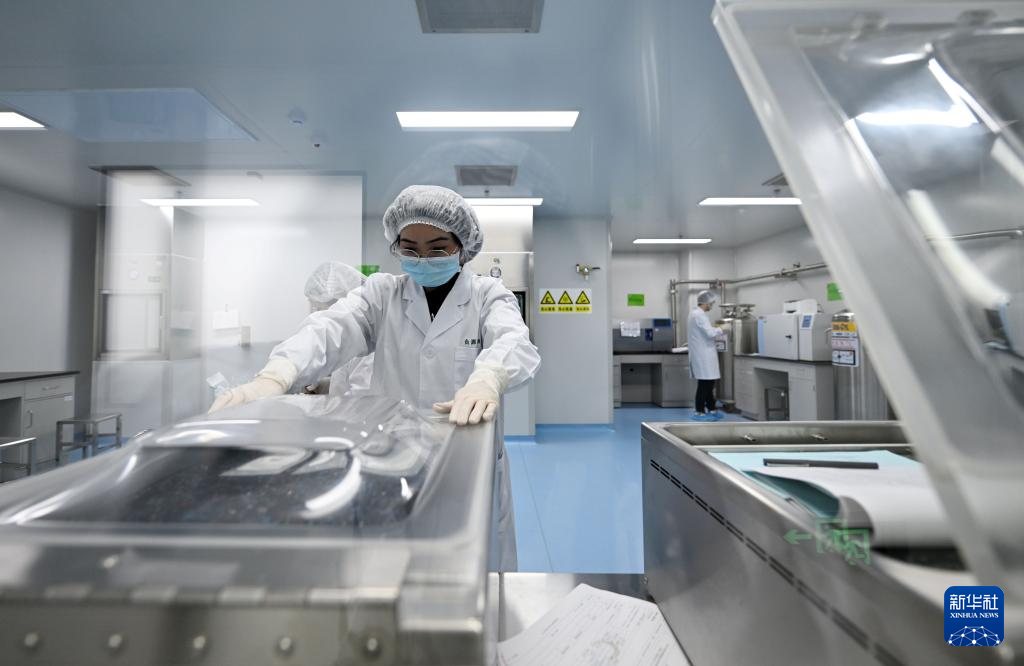 3月21日,合源生物科技(天津)有限公司工作人员在生产基地冻存复苏室内操作设备。