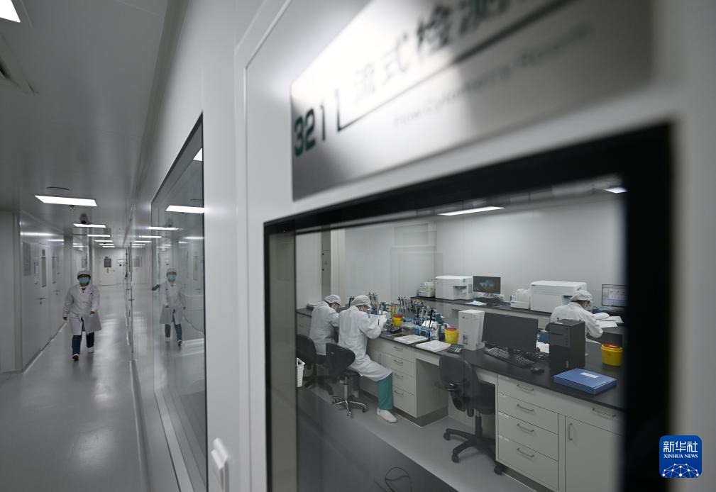 3月21日,工作人员在合源生物科技(天津)有限公司生产基地细胞培养室内工作。
