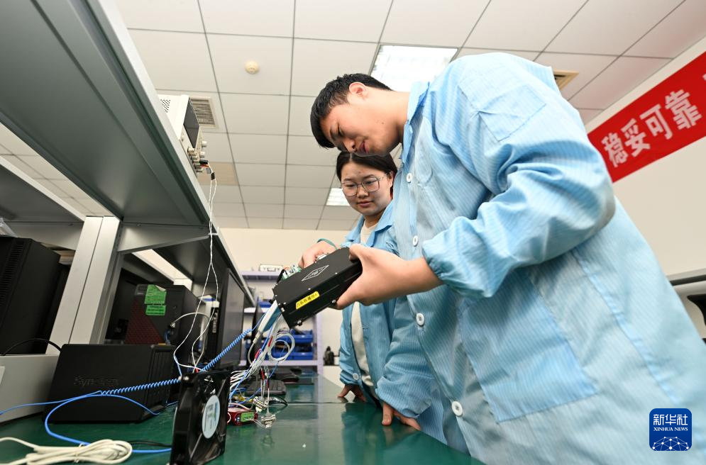 3月21日,天津云遥宇航科技有限公司工作人员在检查一款卫星的核心部件。
