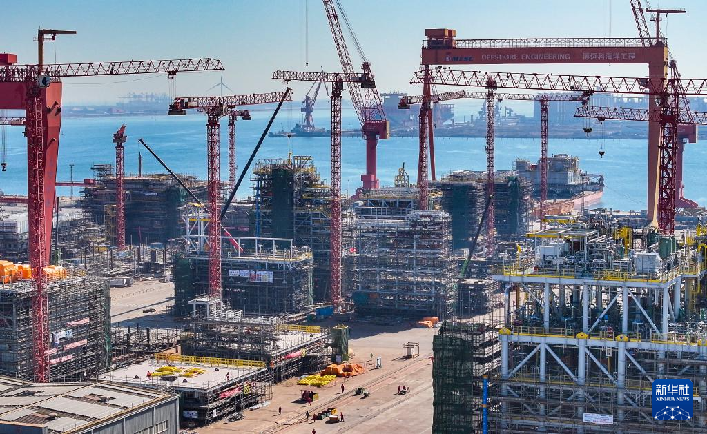 这是3月21日拍摄的天津博迈科海洋工程股份有限公司厂区一景(无人机照片)。