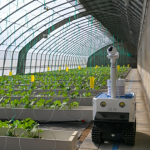 无人巡检机器人在农芯科技(天津)有限责任公司智慧农业园区智能温室内巡控(3月20日摄)。