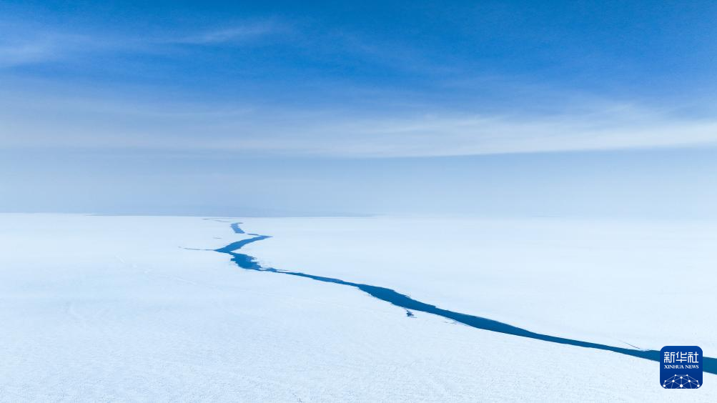 近日,随着天气转暖,青海湖出现解冻迹象。