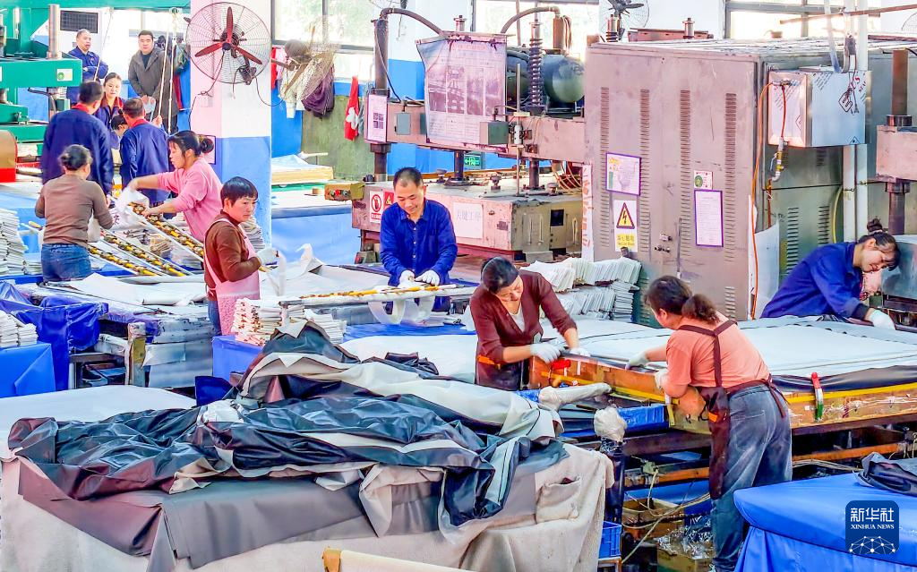 3月21日,工人在江苏句容经济开发区一家服装企业车间忙碌。