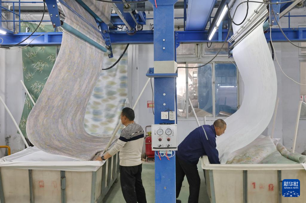3月21日,工人在位于江苏南通的江苏州际数码印花有限公司数码印花车间内忙碌。
