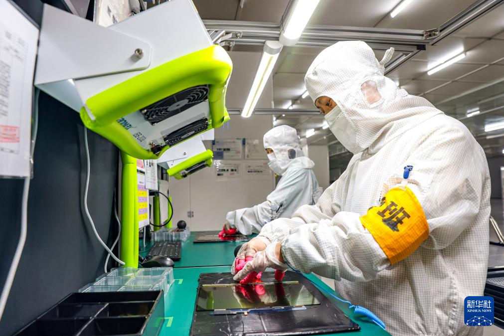 3月21日,在江苏省江都高新技术产业开发区江苏和熠光显科技有限公司,工人在无尘车间作业。