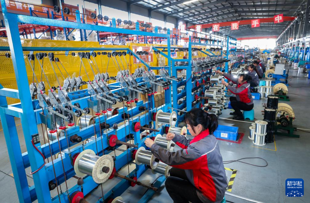 3月22日,工人在位于江苏省兴化市戴南镇的江苏银锡高温线缆有限公司生产车间作业。