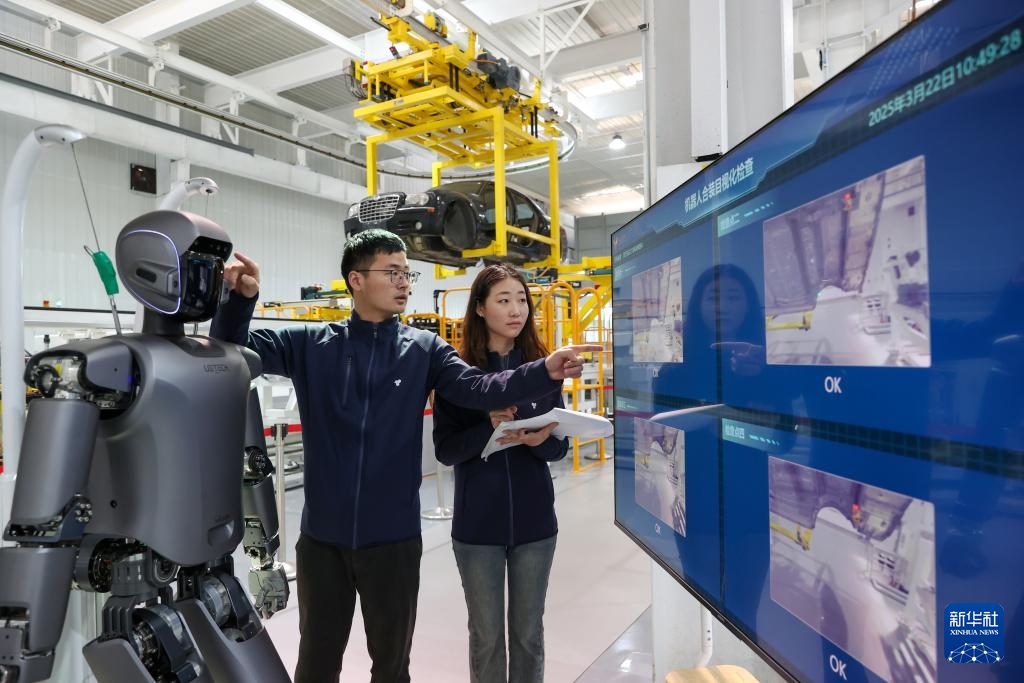 3月22日,在位于江苏无锡的天奇股份人形机器人数据采集实训基地,工程师在调试人形机器人。