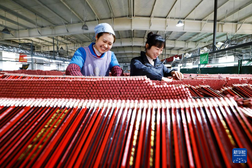 3月20日,在位于江苏泗洪经济开发区的中国第一铅笔泗洪有限公司生产车间,工人在赶制出口订单。