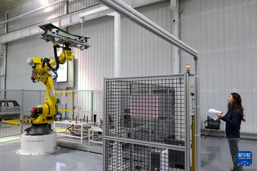 3月22日,在位于江苏无锡的天奇股份人形机器人数据采集实训基地,工程师在调试自动涂胶机器人。