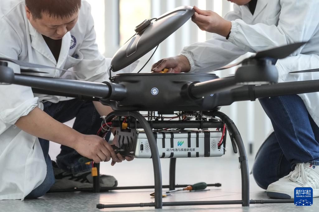 3月21日,科研人员把超低温高比能锂电池安装在无人机上。