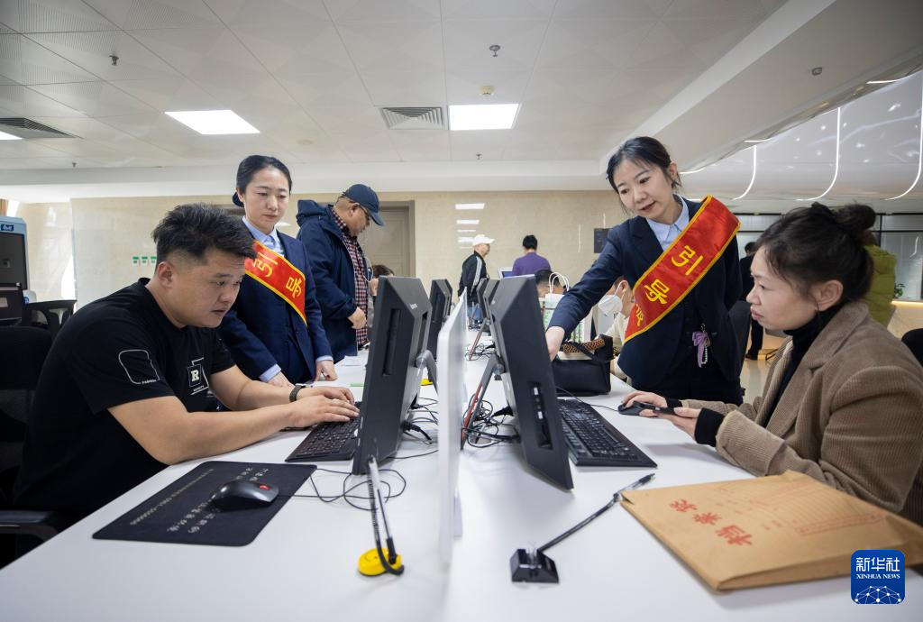 3月21日,在银川市审批服务管理局企业服务大厅,工作人员引导办事人员使用宁夏企业开办“一网通办”服务平台办理业务。