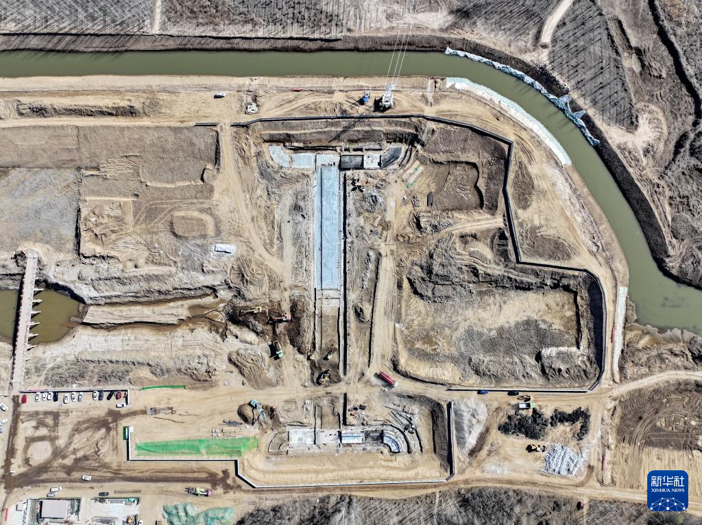 河北省涿州市小清河分洪区建设项目施工现场(3月22日摄,无人机照片)。