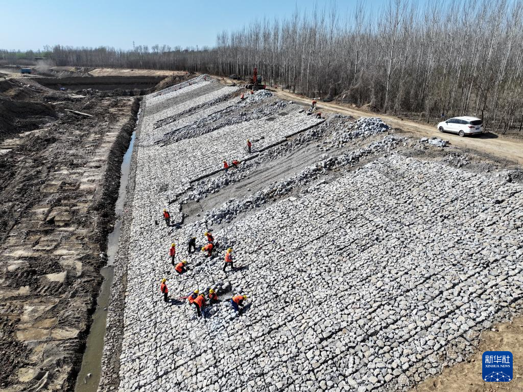 3月22日,中铁十八局集团工人在河北省涿州市小清河分洪区建设项目现场施工。