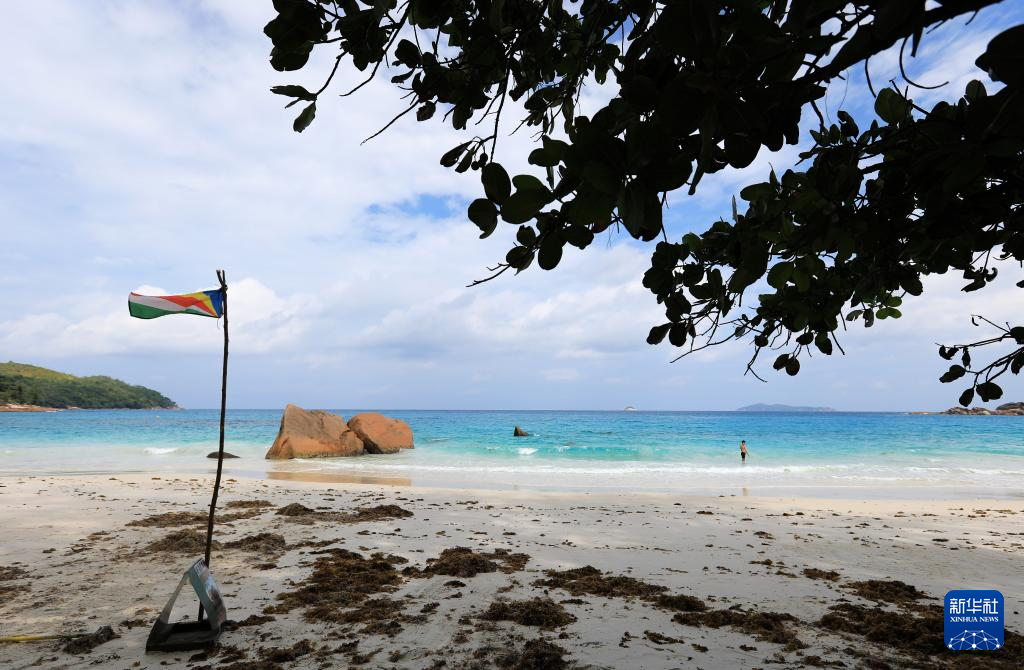 这是3月15日塞舌尔普拉兰岛拍摄的海边风光。