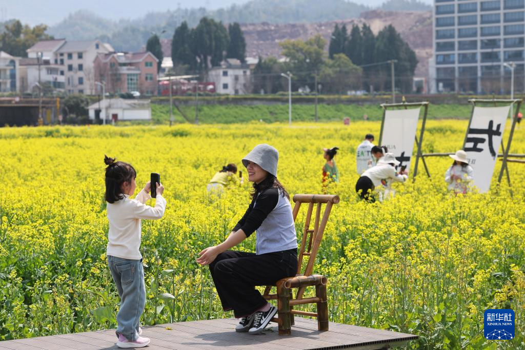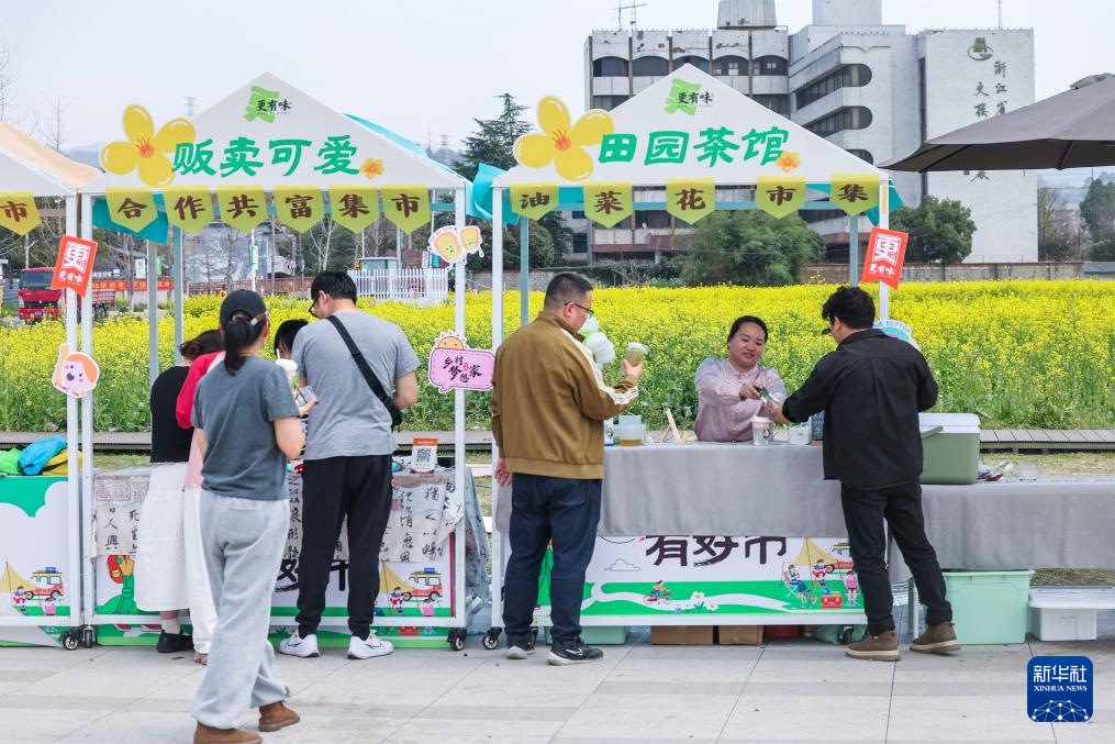 近期,浙江省建德市更楼街道城南城市田园的油菜花竞相开放,一场春日花田市集也在花田边开启,游客们支起帐篷天幕在田间赏花海、品美食,尽享春光。