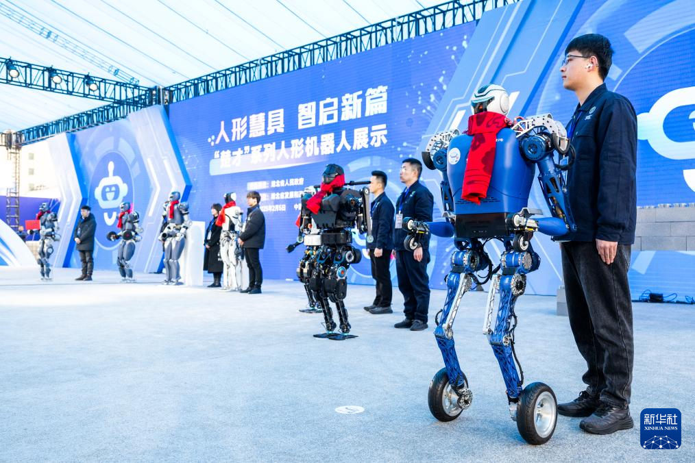 2月5日,10款“楚才”系列人形机器人在湖北全省加快建成中部地区崛起重要战略支点推进大会现场亮相。