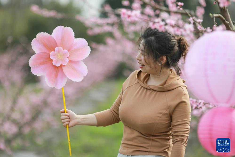 3月23日,游客在四川省成都市龙泉山桃花基地观光。