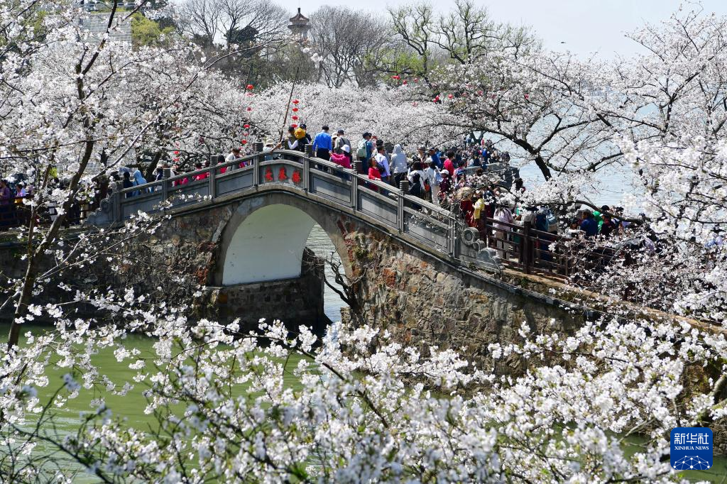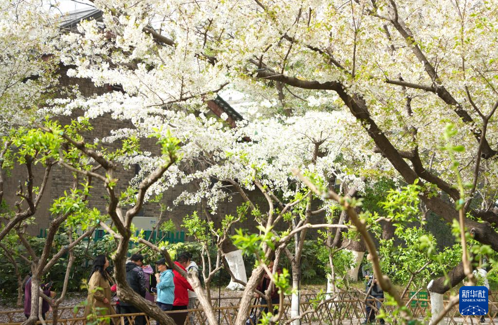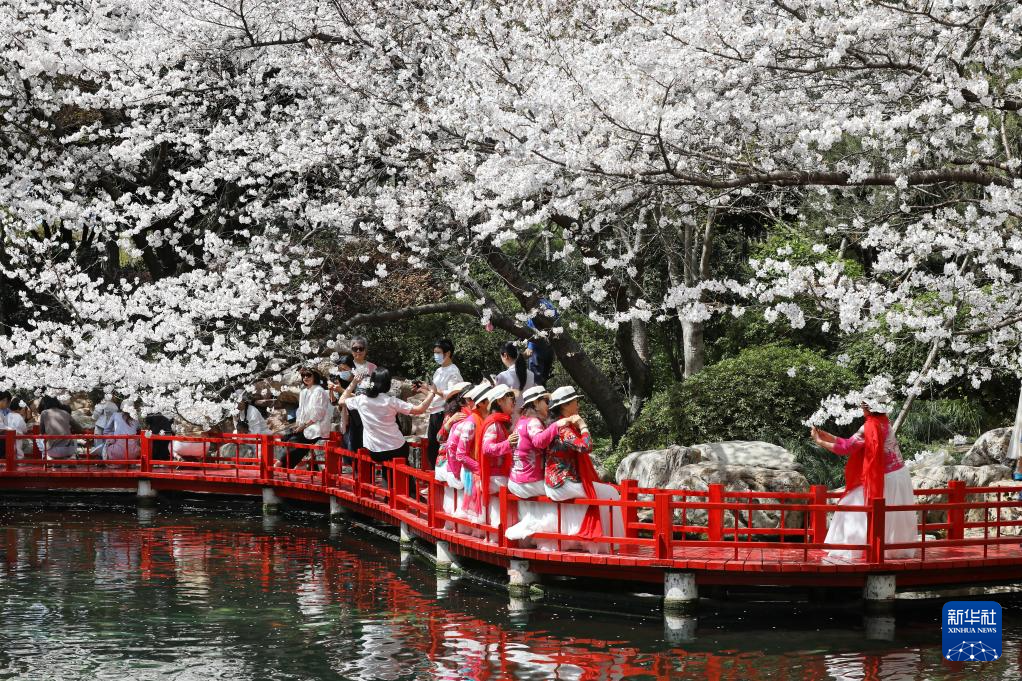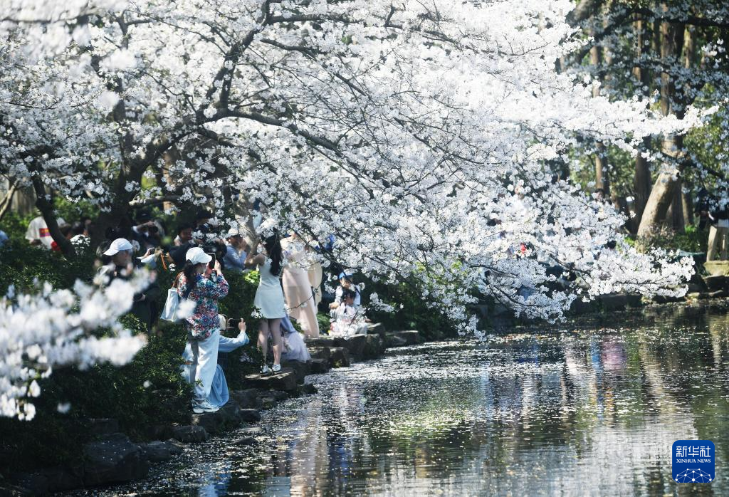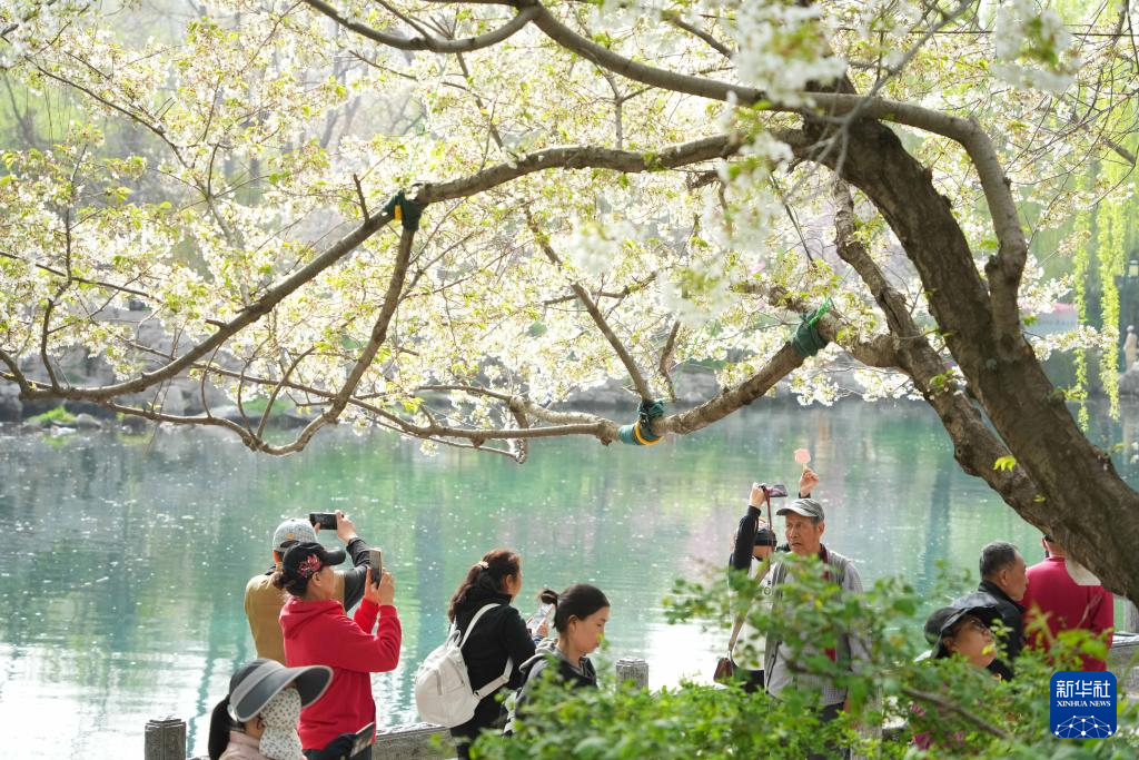 3月25日,人们在山东省济南五龙潭公园观赏樱花。