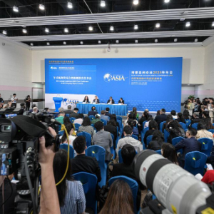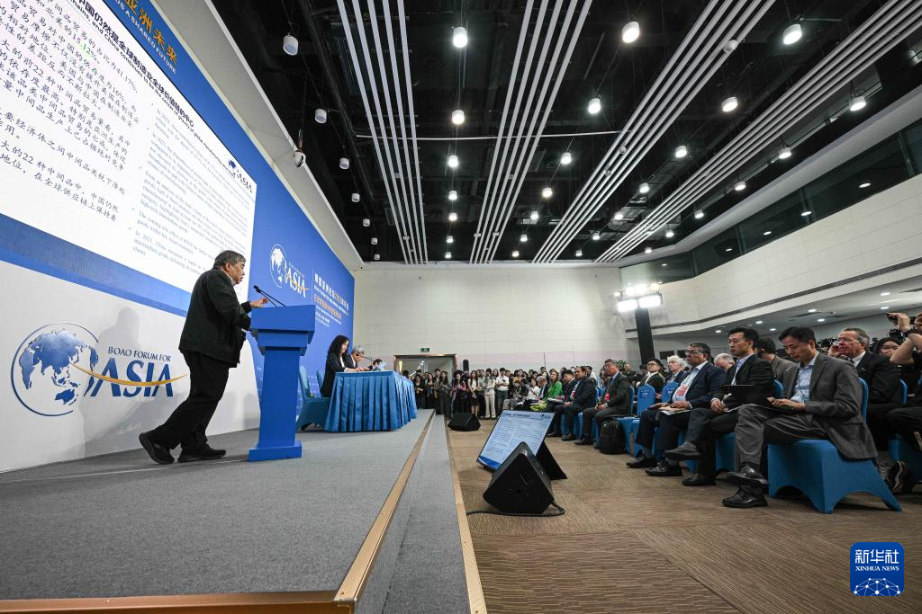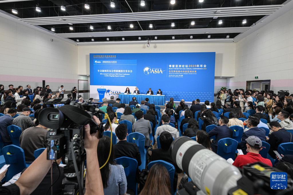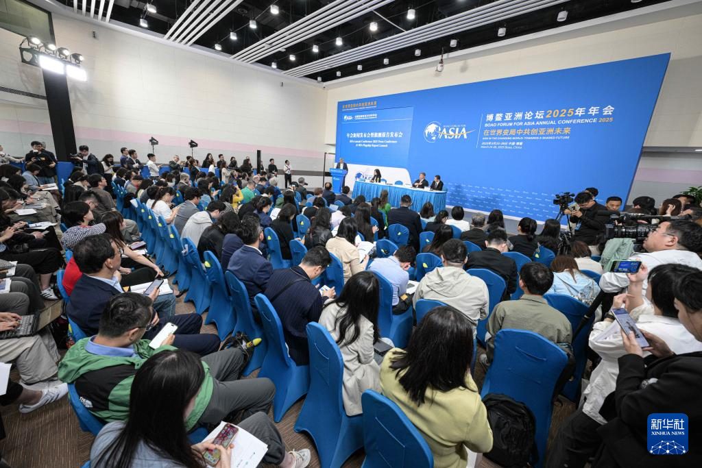 3月25日在海南博鳌拍摄的博鳌亚洲论坛2025年年会新闻发布会暨旗舰报告发布会现场。