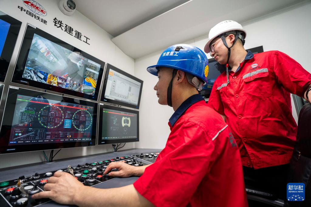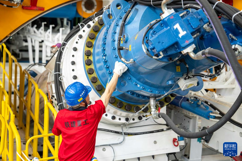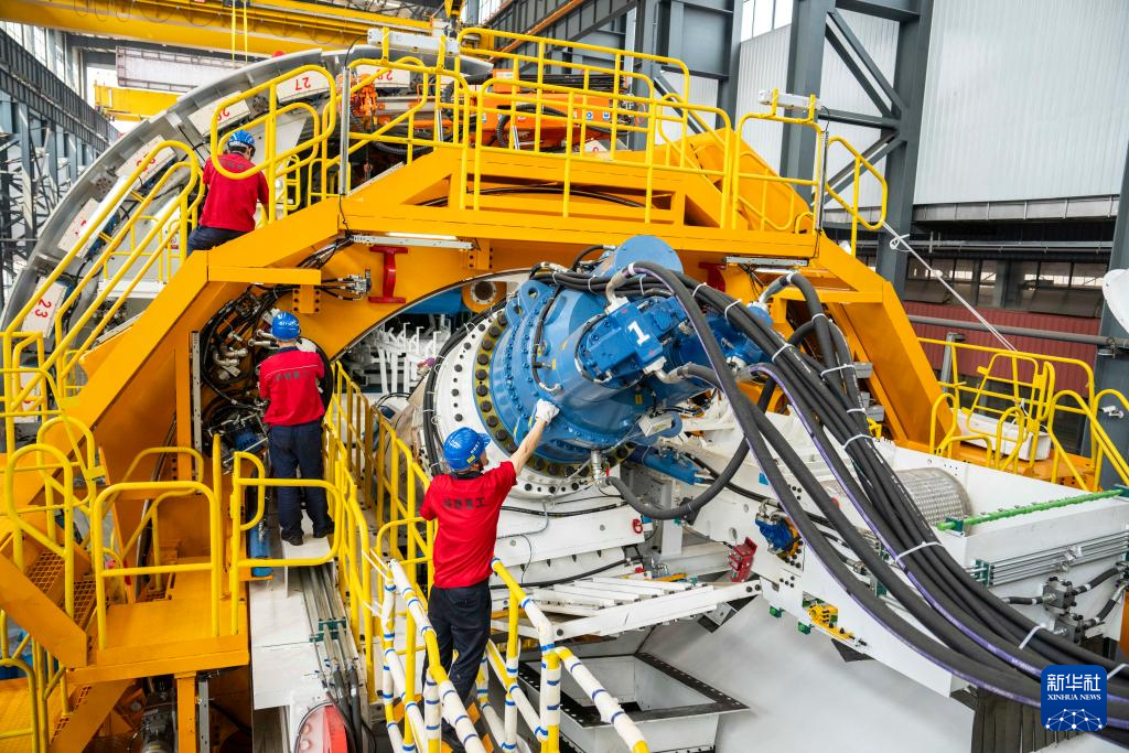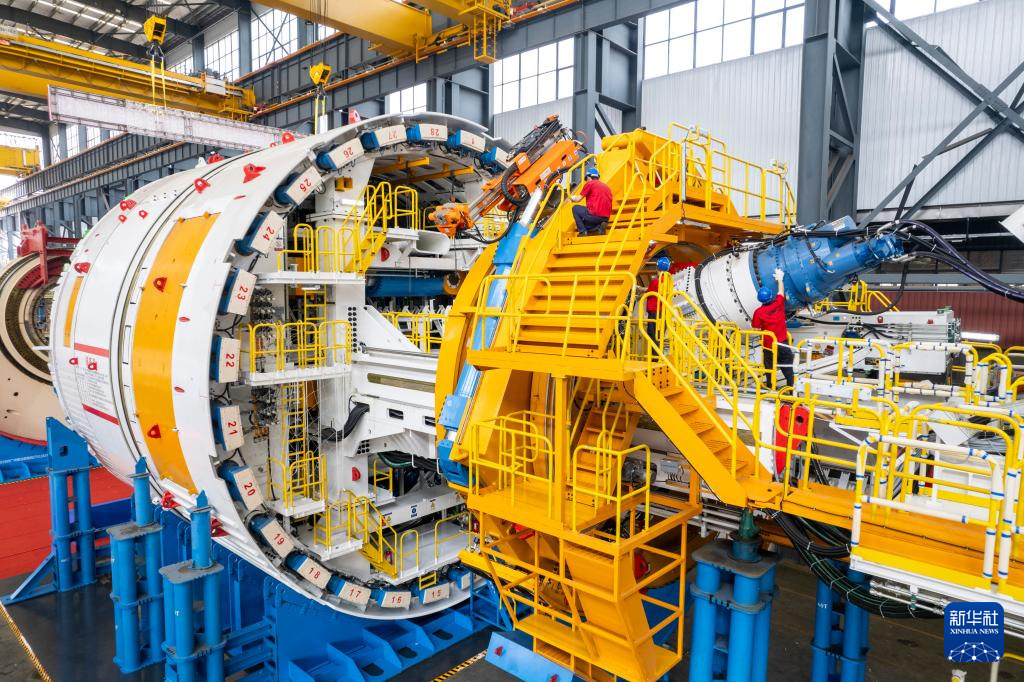 3月26日,工人在铁建重工长沙第二产业园调试“强基号”掘进机。