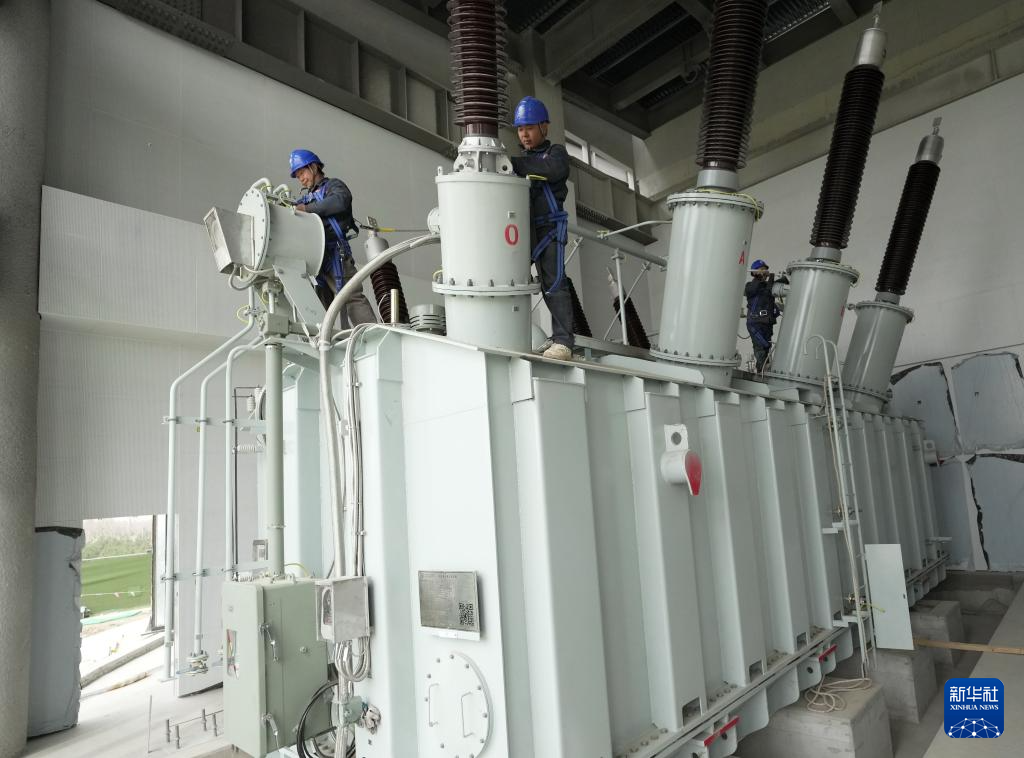 3月26日,工人在国网雄安新区复兴220千伏变电站建设工地施工。