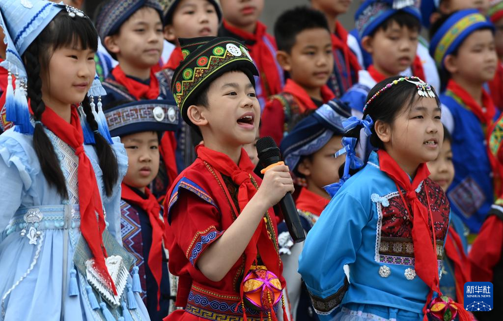当日,广西南宁市民族大道东段小学举行2025年“铸牢中华民族共同体意识”主题活动暨“广西三月三”民族艺术节,孩子们以多种方式喜迎佳节。