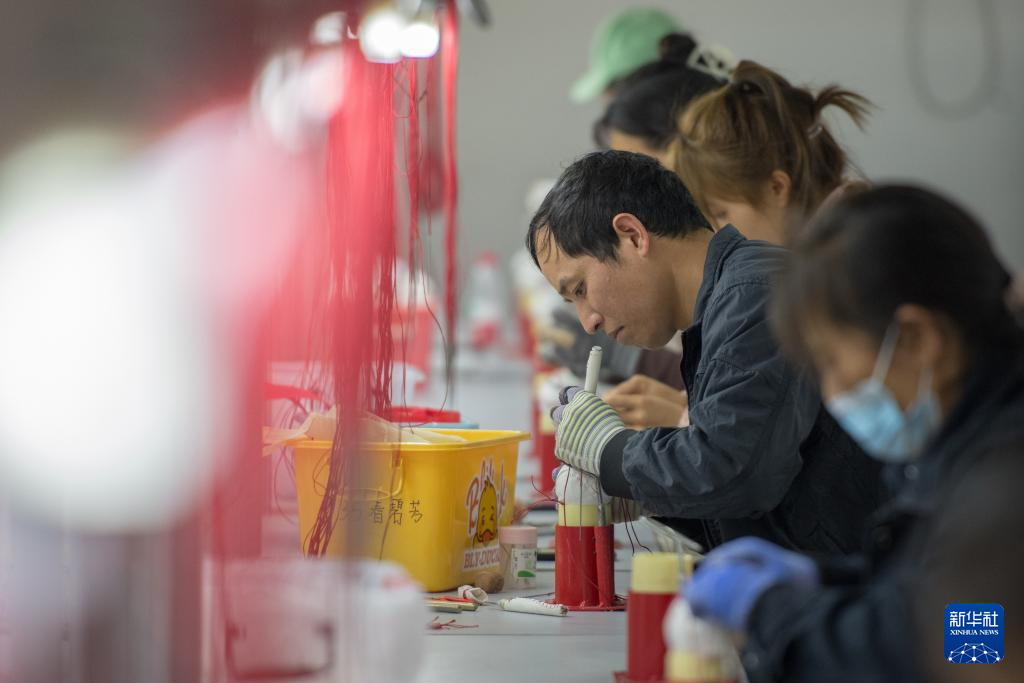 3月26日,工人在怒江州最大的易地扶贫搬迁安置点和谐社区棒球工厂制作棒球。