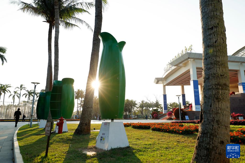 3月26日在博鳌亚洲论坛2025年年会会场外拍摄的花朵风机。花朵风机用来收集风能,是岛内可再生能源利用项目之一。
